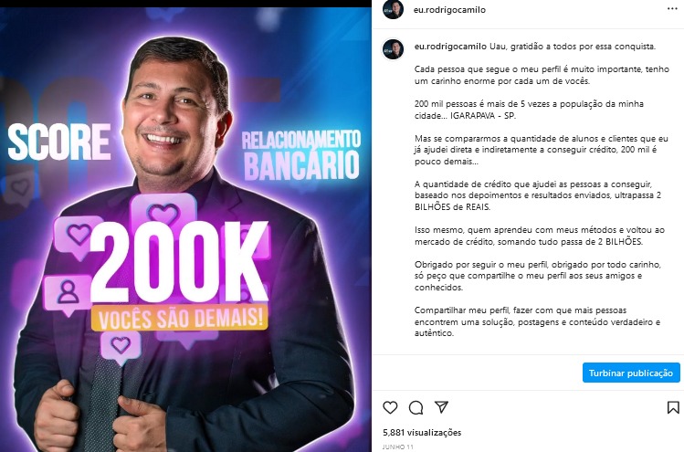 seguidores novamente dobrou e o advogado conseguiu atingir a quantidade de 200 mil